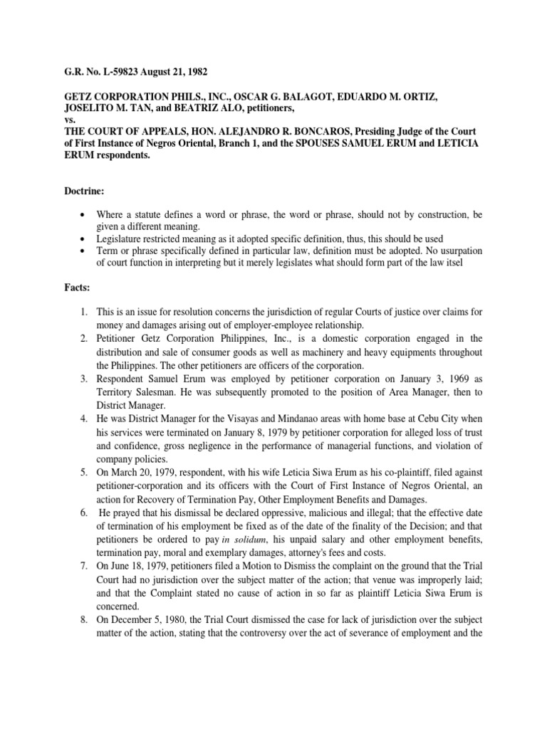 Getz Corp vs Court of Appeals (Case Digest) PDF Employment