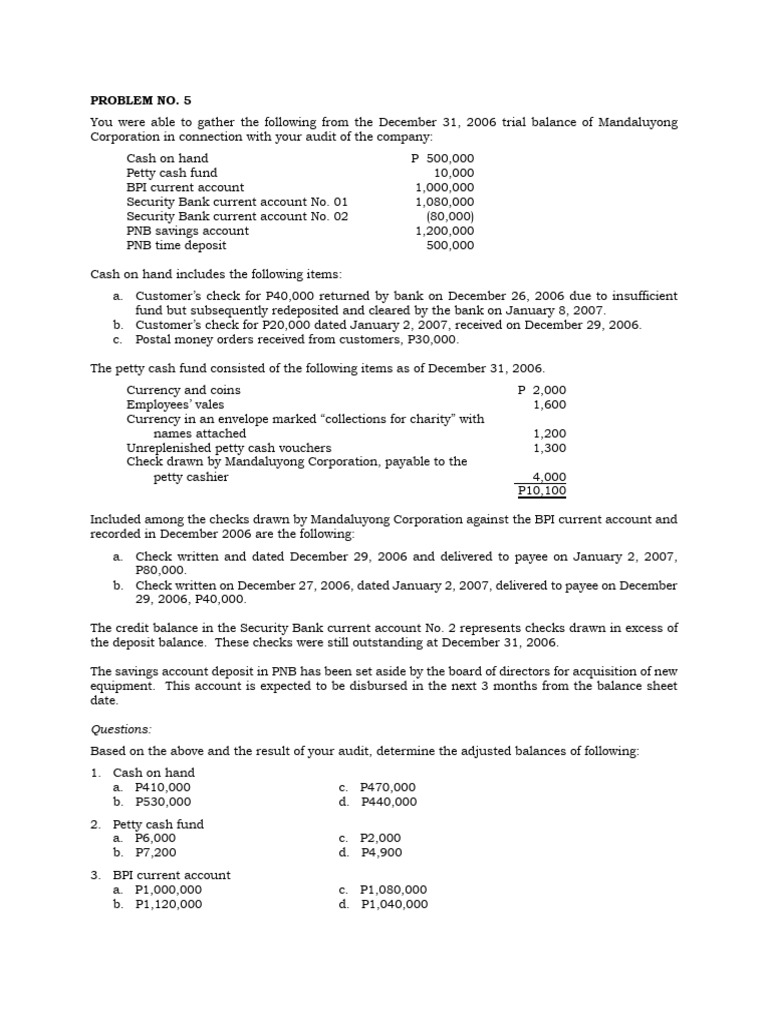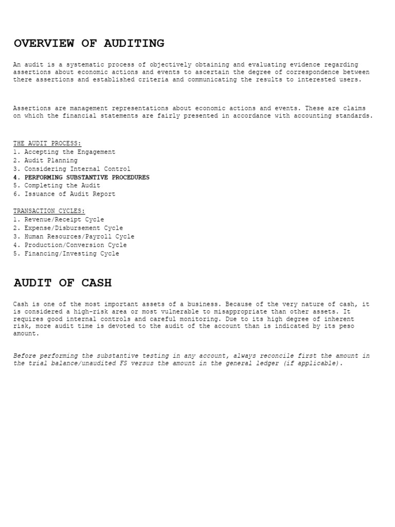 Audit of Cash (Printable Handout) Download Free PDF Banks Cheque