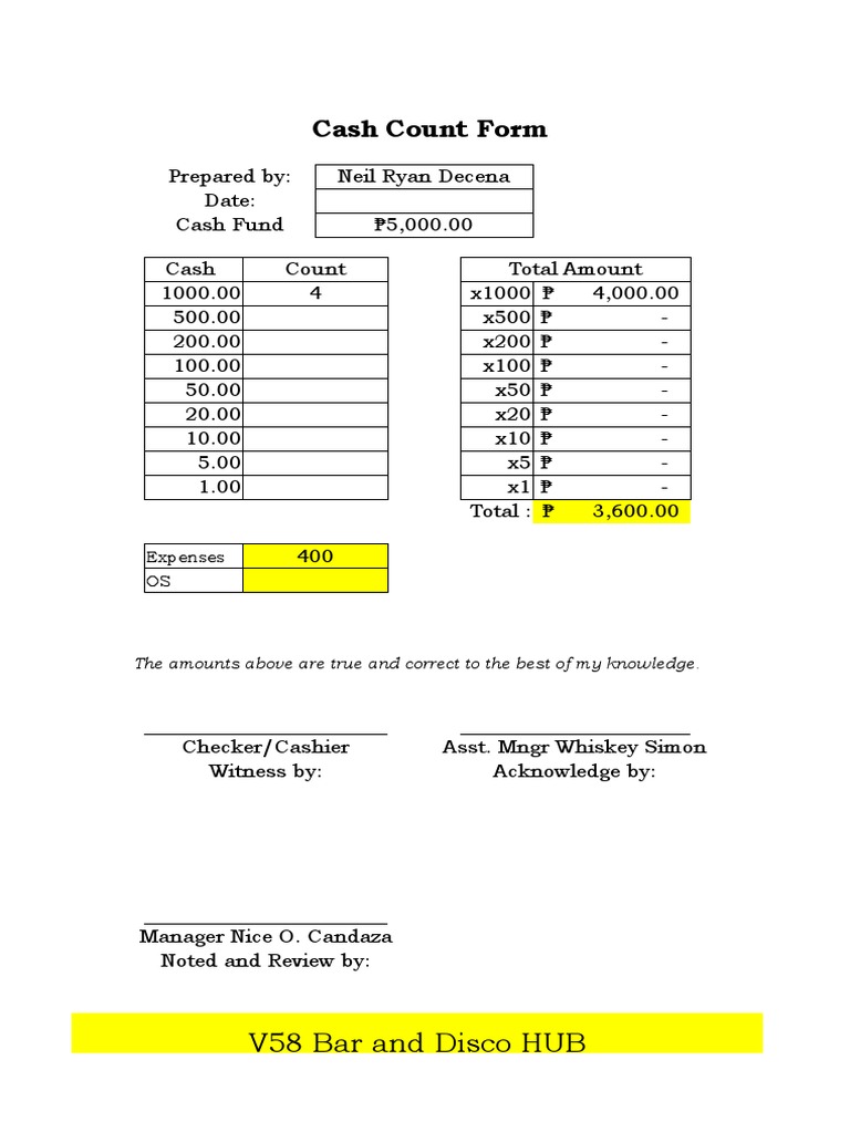 Restaurant Daily Cash Audit Form PDF Credit Card Cash