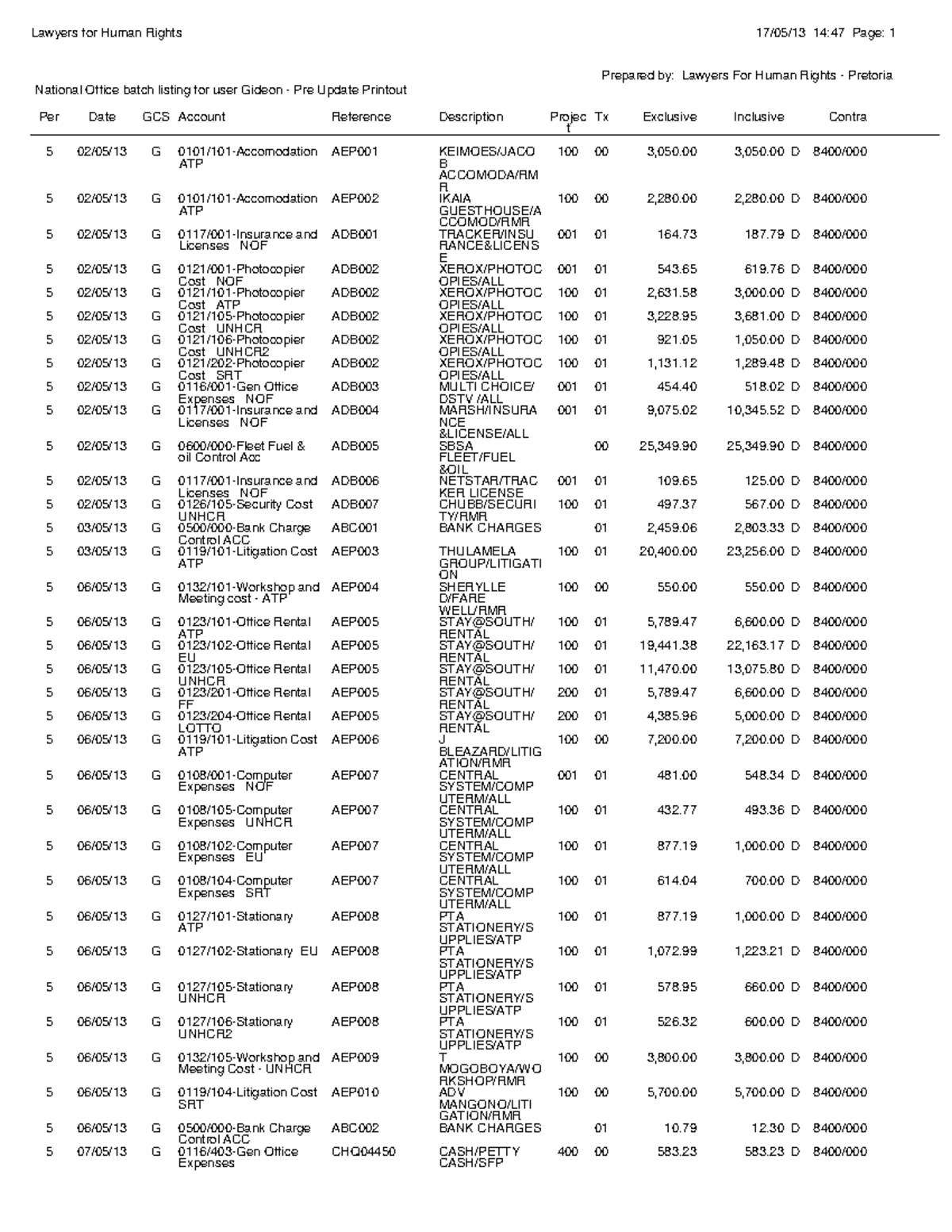 Cash b may memo Prepared by: Lawyers For Human Rights Pretoria