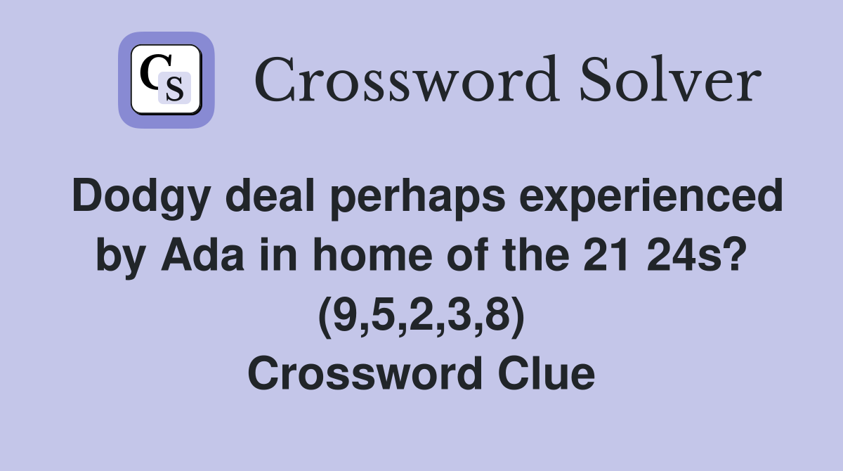 Dodgy deal perhaps experienced by Ada in home of the 21 24s? (9 5 2 3 8