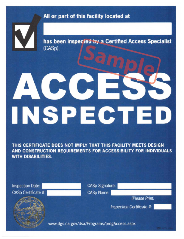 CASp Inspection San Francisco CA Certified ADA Consultants