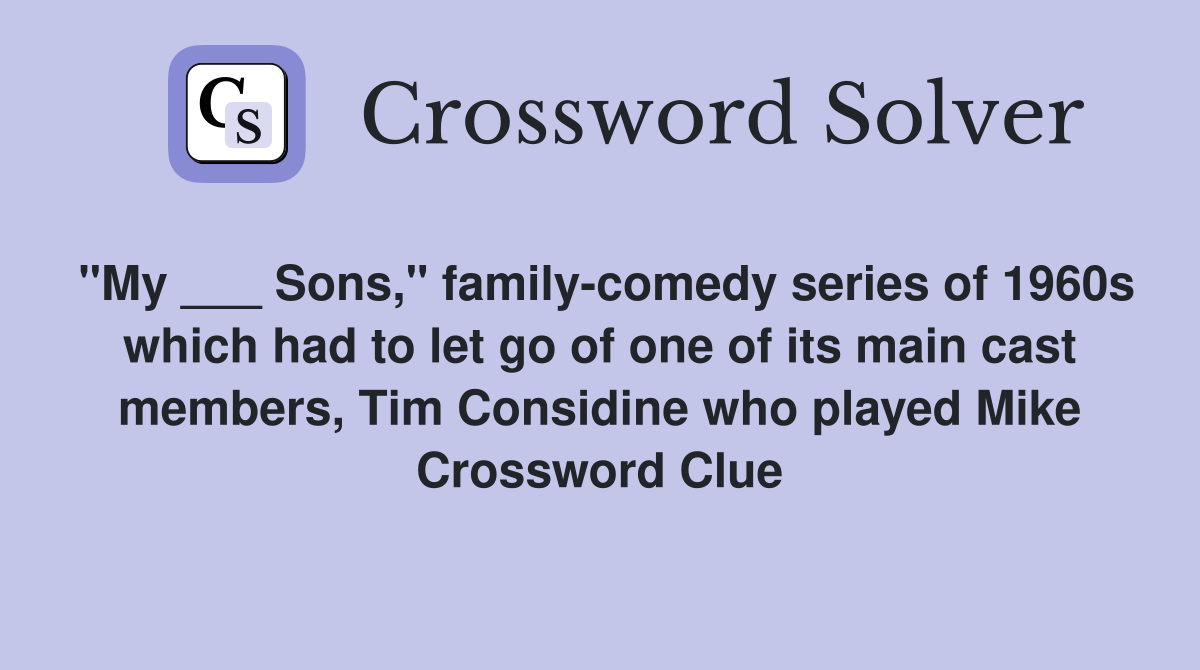 quot My Sons quot family comedy series of 1960s which had to let go of one
