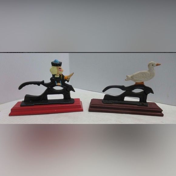 Unbranded Holiday Moderncast Iron Nut Crackers On Wood Platforms
