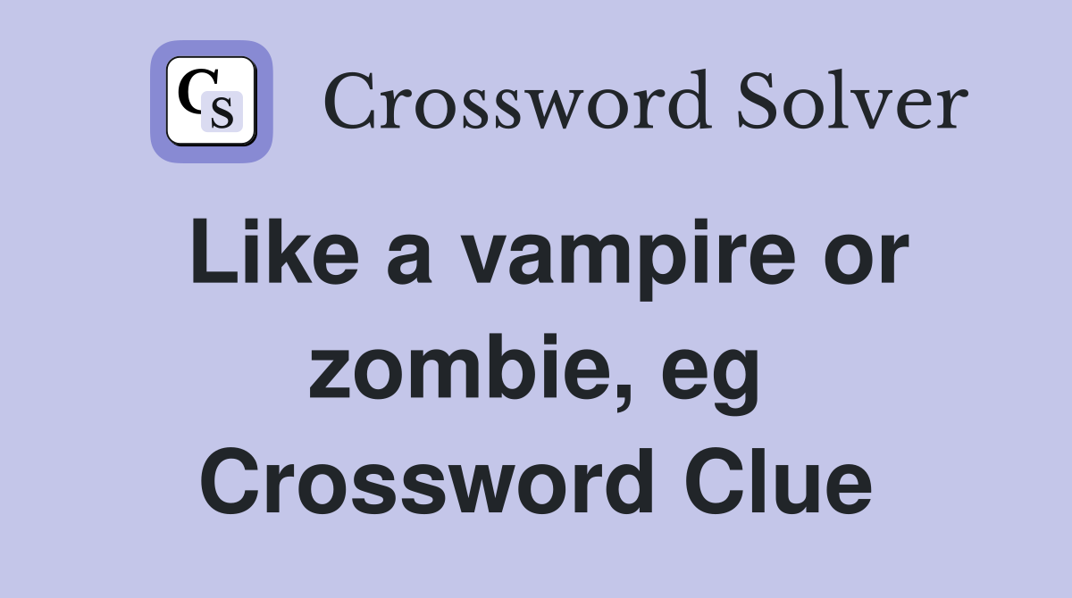 Like a vampire or zombie eg Crossword Clue Answers Crossword Solver