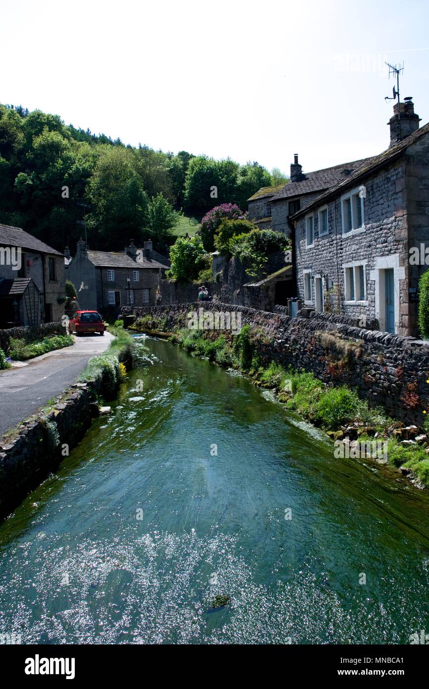 Houses by the river in Castleton Derbyshire Stock Photo Alamy