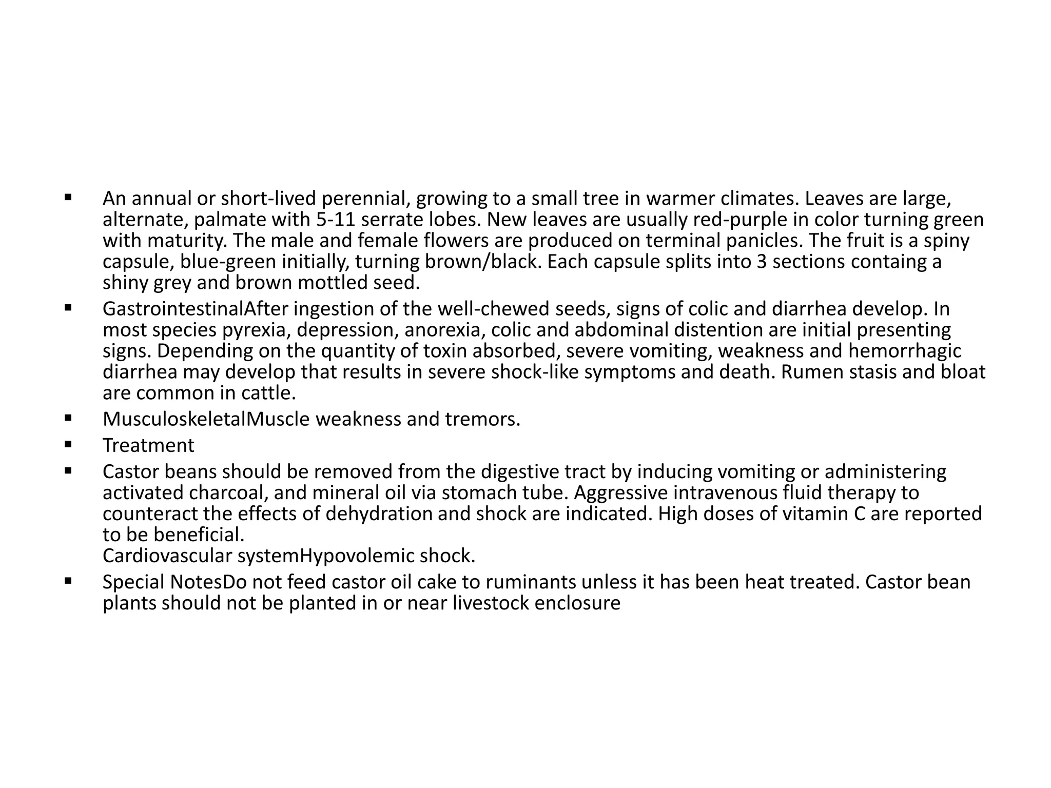 Castor Bean Poisoning in Dogs and Cats Castor Bean Toxicity