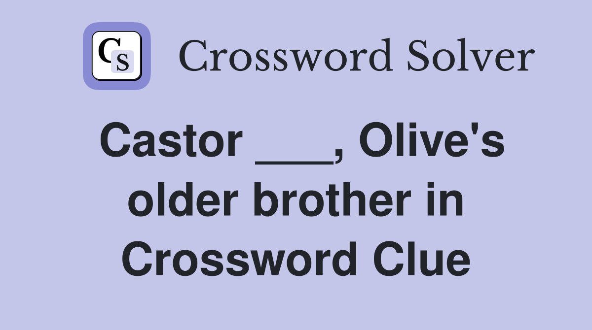 Castor Olive s older brother in Popeye Crossword Clue Answers