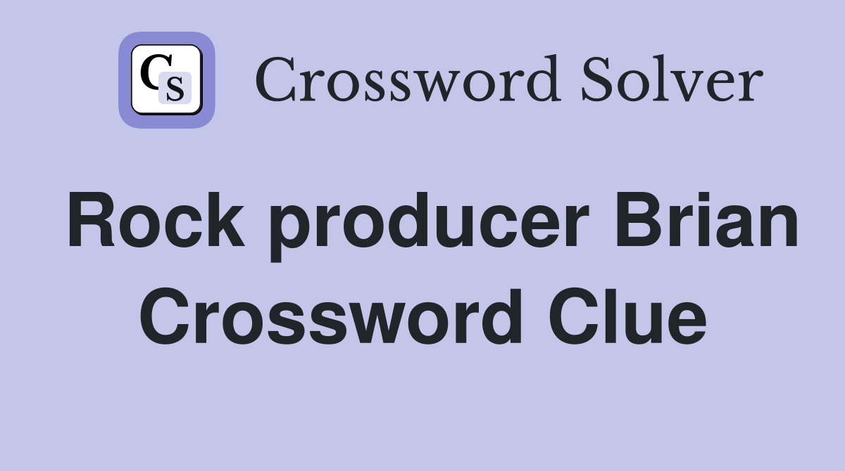 Rock producer Brian Crossword Clue Answers Crossword Solver