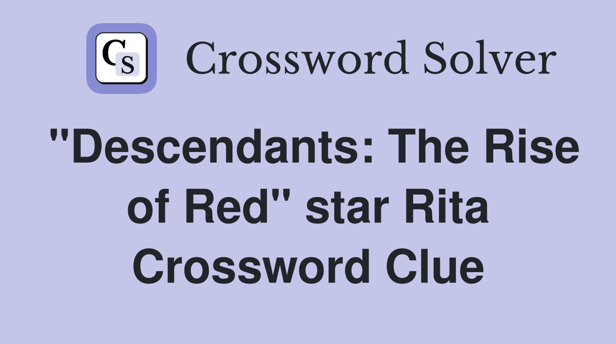quot Descendants: The Rise of Red quot star Rita Crossword Clue Answers