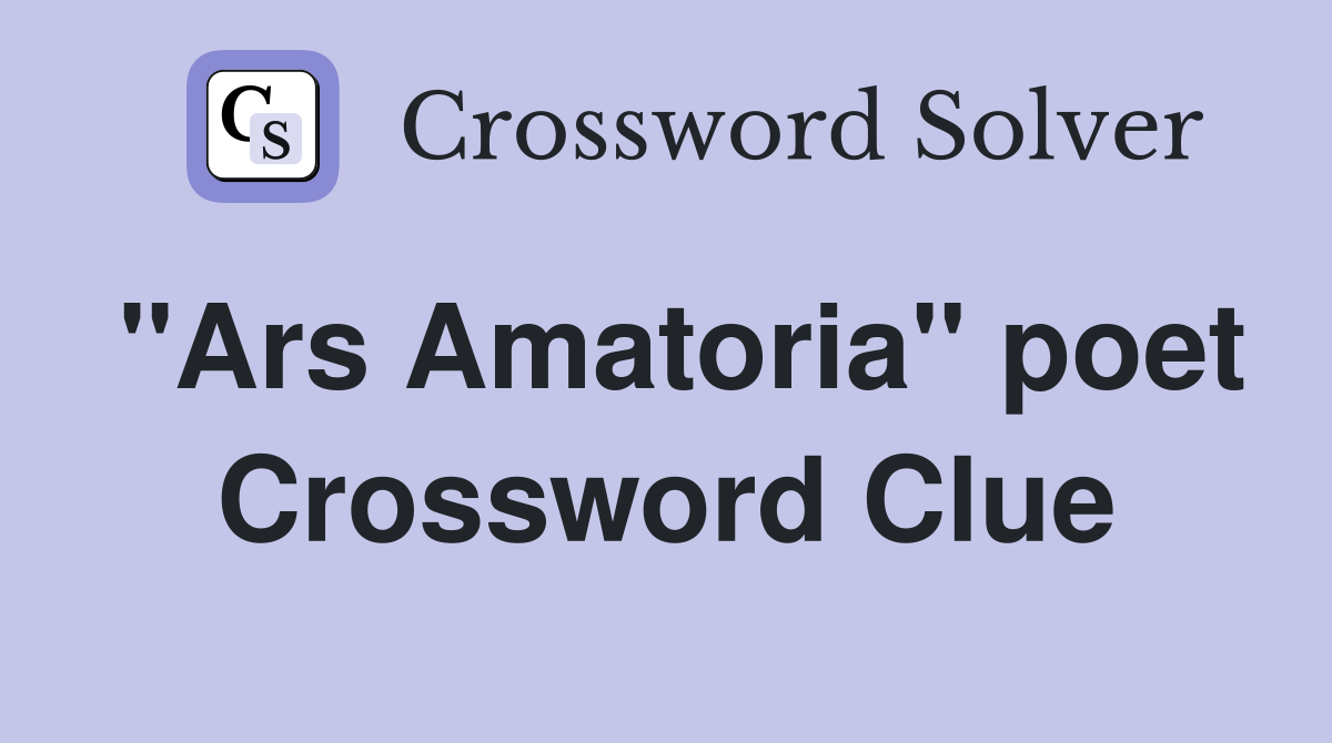 quot Ars Amatoria quot poet Crossword Clue Answers Crossword Solver
