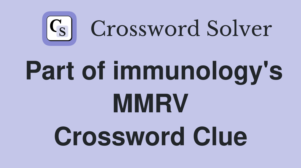 Part of immunology #39 s MMRV Crossword Clue Answers Crossword Solver