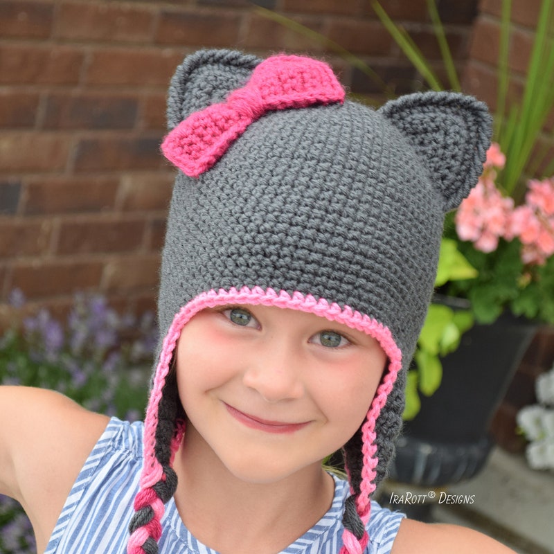 PATTERN Crochet Ear Flap Cat Hat With Stars Etsy Crochet hats