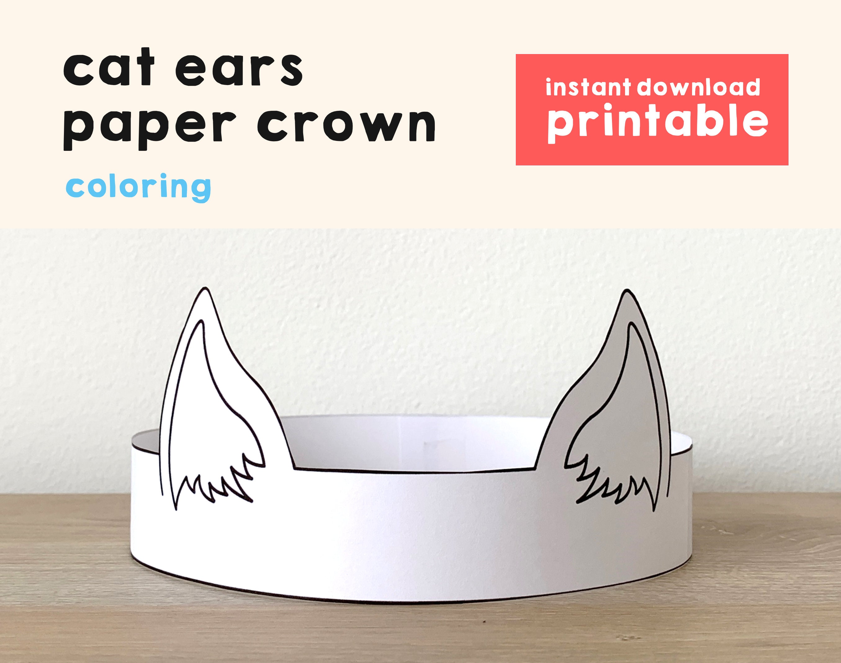 Cat Ears Paper Crown Party Coloring Printable Kids Craft Etsy