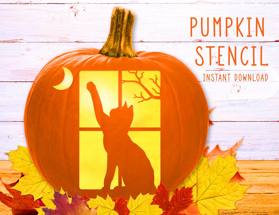 Cat Pumpkin Stencil PRINTABLE Pumpkin Stencil Jack O #39 Lantern