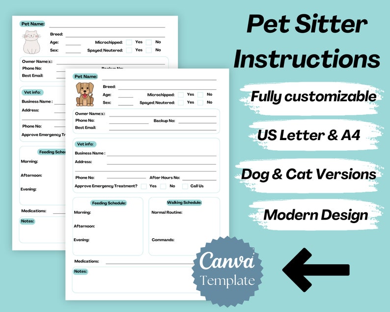 Pet Sitting Instructions Canva Template Pet Sitter Notes Dog Sitter