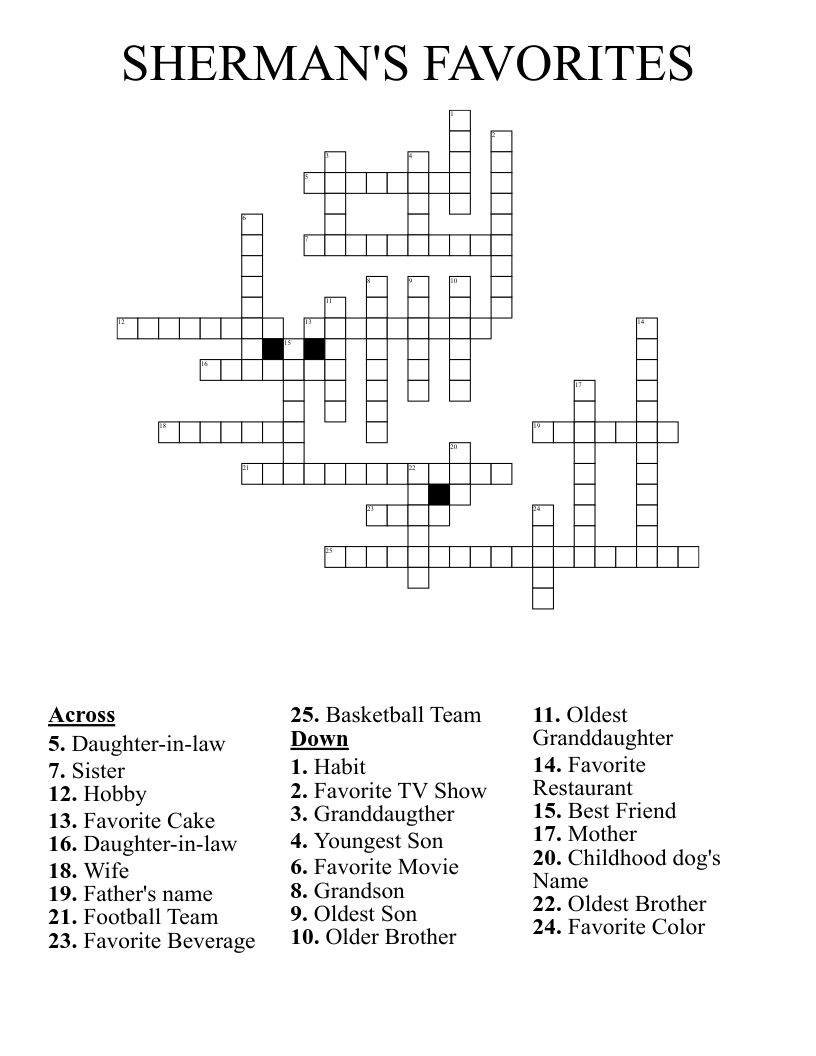 SHERMAN #39 S FAVORITES Crossword WordMint