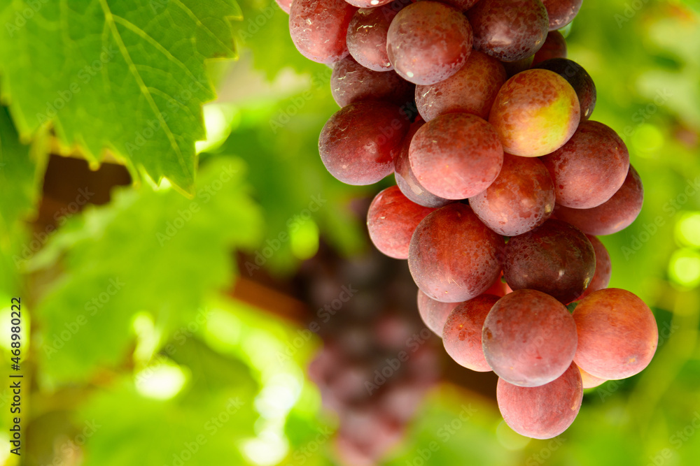 Racimos de uvas rojas en la parra madurando para su recolección Stock