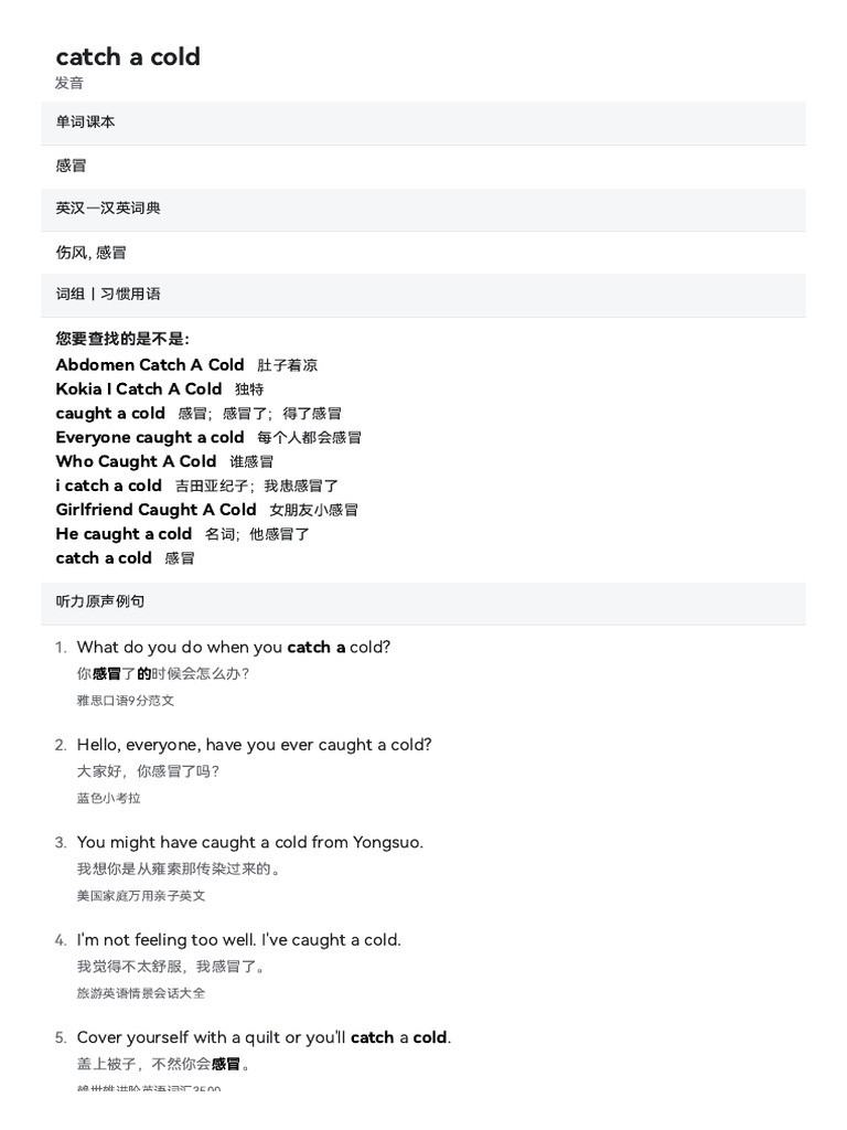 Definition Meaning of Catch cold LanGeek