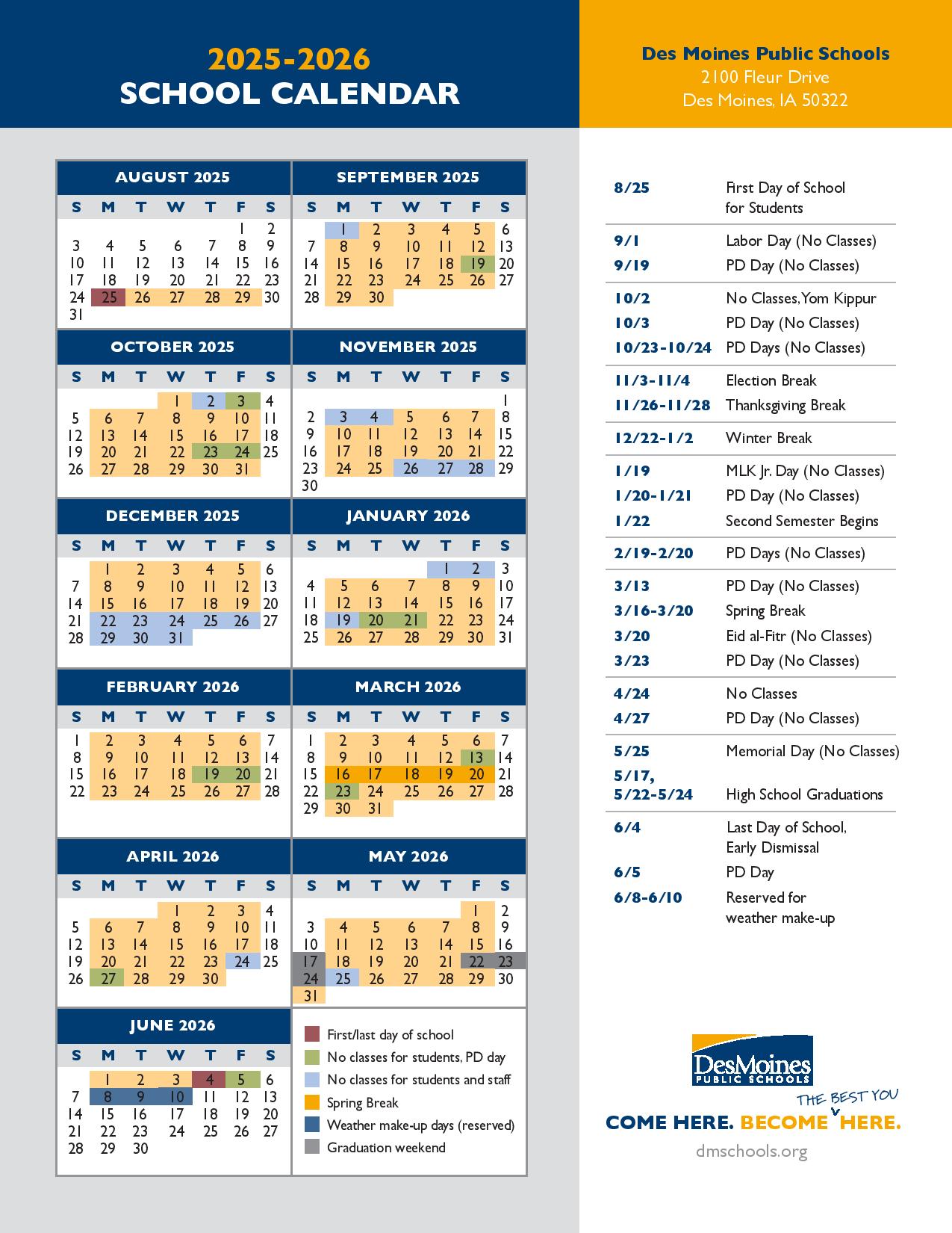 Des Moines Public Schools Calendar 2025 2026 Holidays