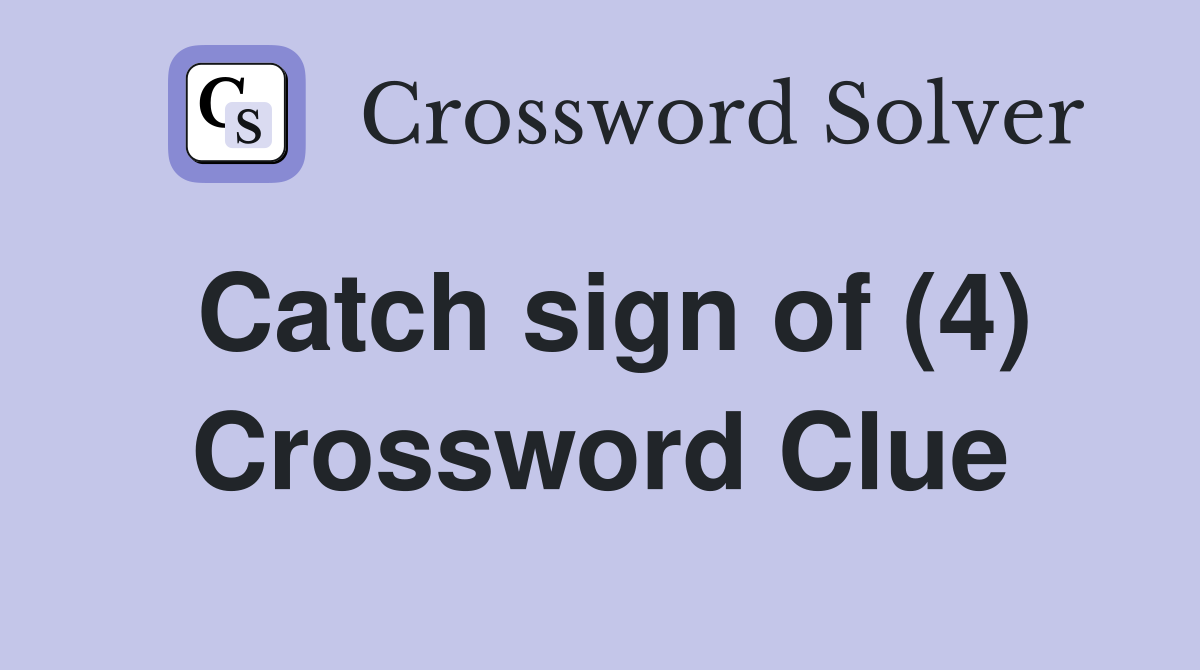 Catch sign of (4) Crossword Clue Answers Crossword Solver