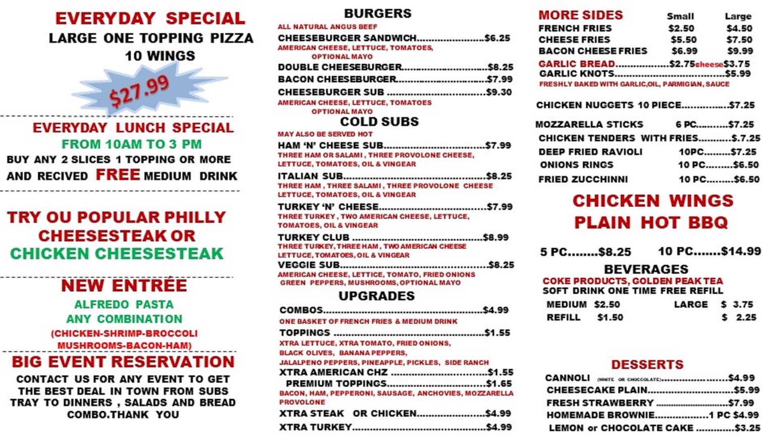 Online Menu of New York Pizzeria Restaurant Fort Plain New York