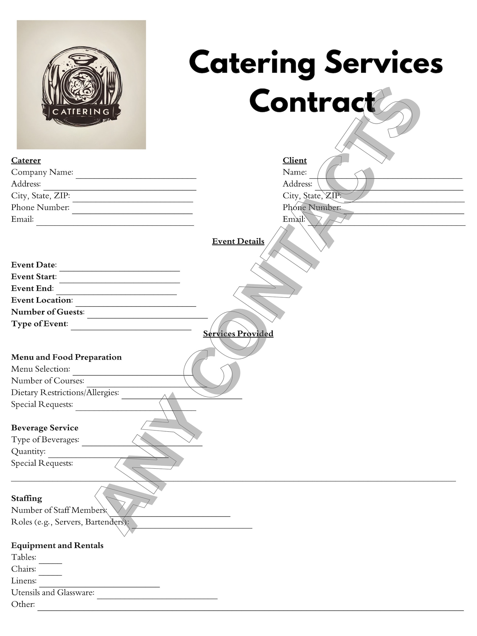 Catering Contract Template Printable Catering Service Contract