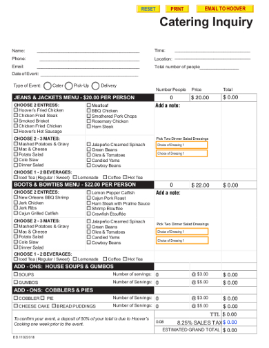 Catering Inquiry Form Template