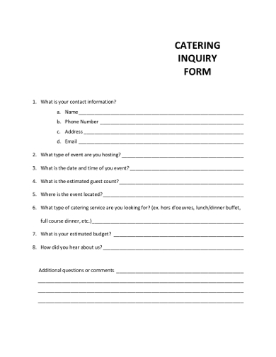 Here are some of the images for Catering Inquiry Form Template that we found in our website database.