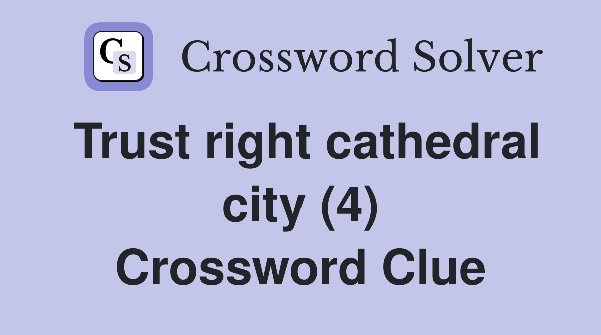 Trust right cathedral city (4) Crossword Clue Answers Crossword Solver
