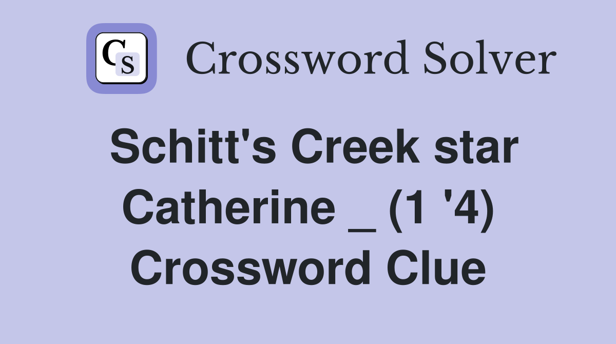 Schitt s Creek star Catherine (1 4) Crossword Clue Answers