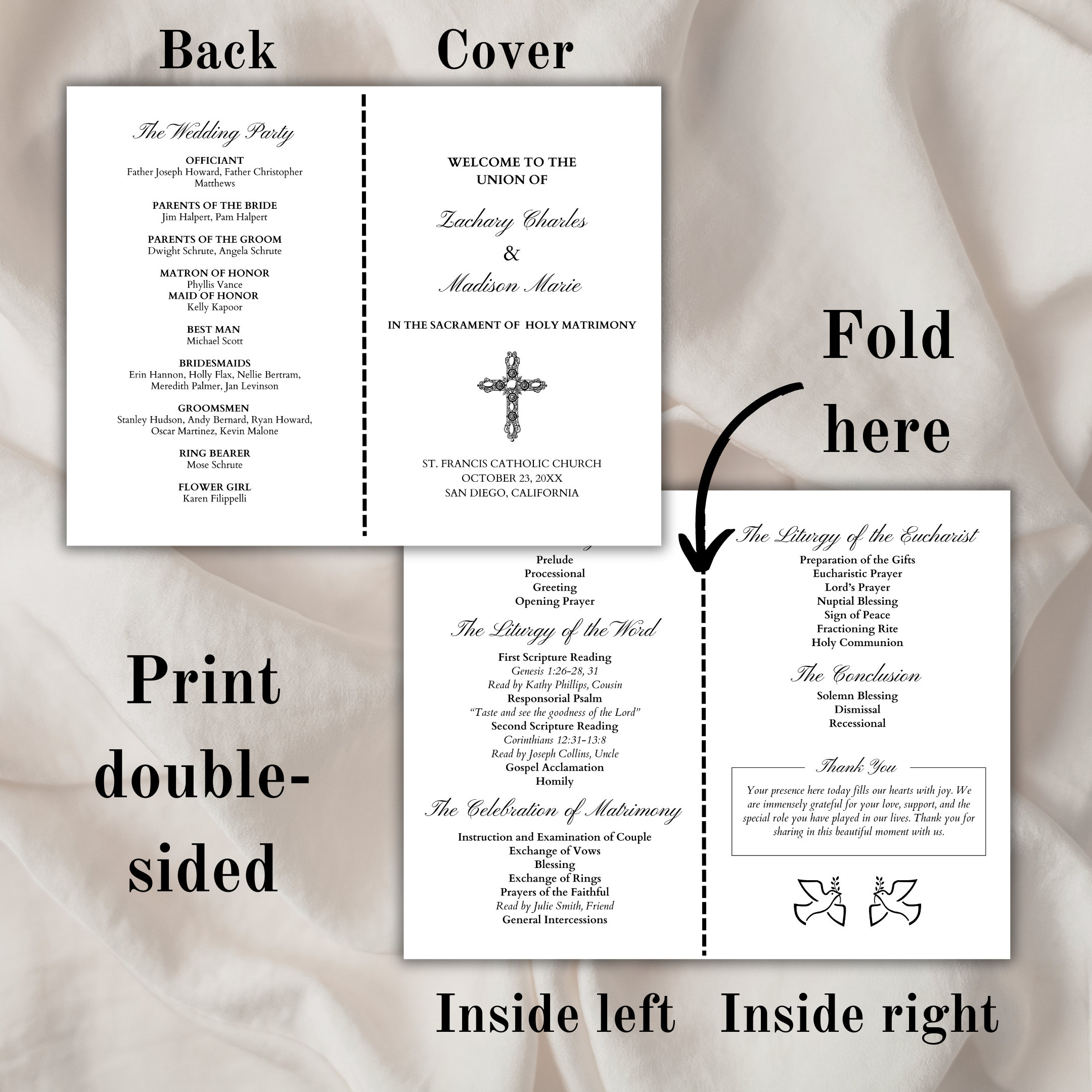 Catholic Wedding Mass Program Booklet (full Mass) Trifold Catholic
