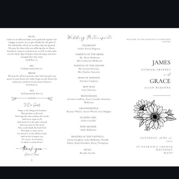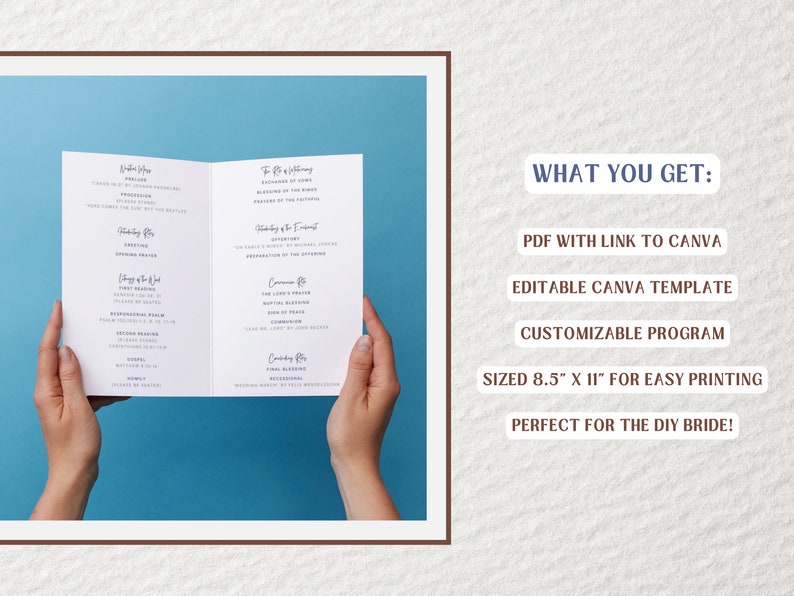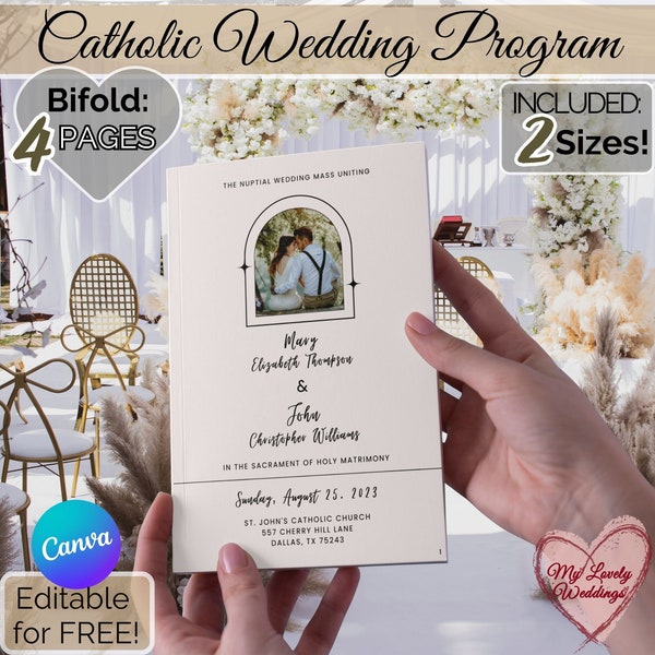 Trifold Catholic Wedding Mass Program Template: Editable Canva Design