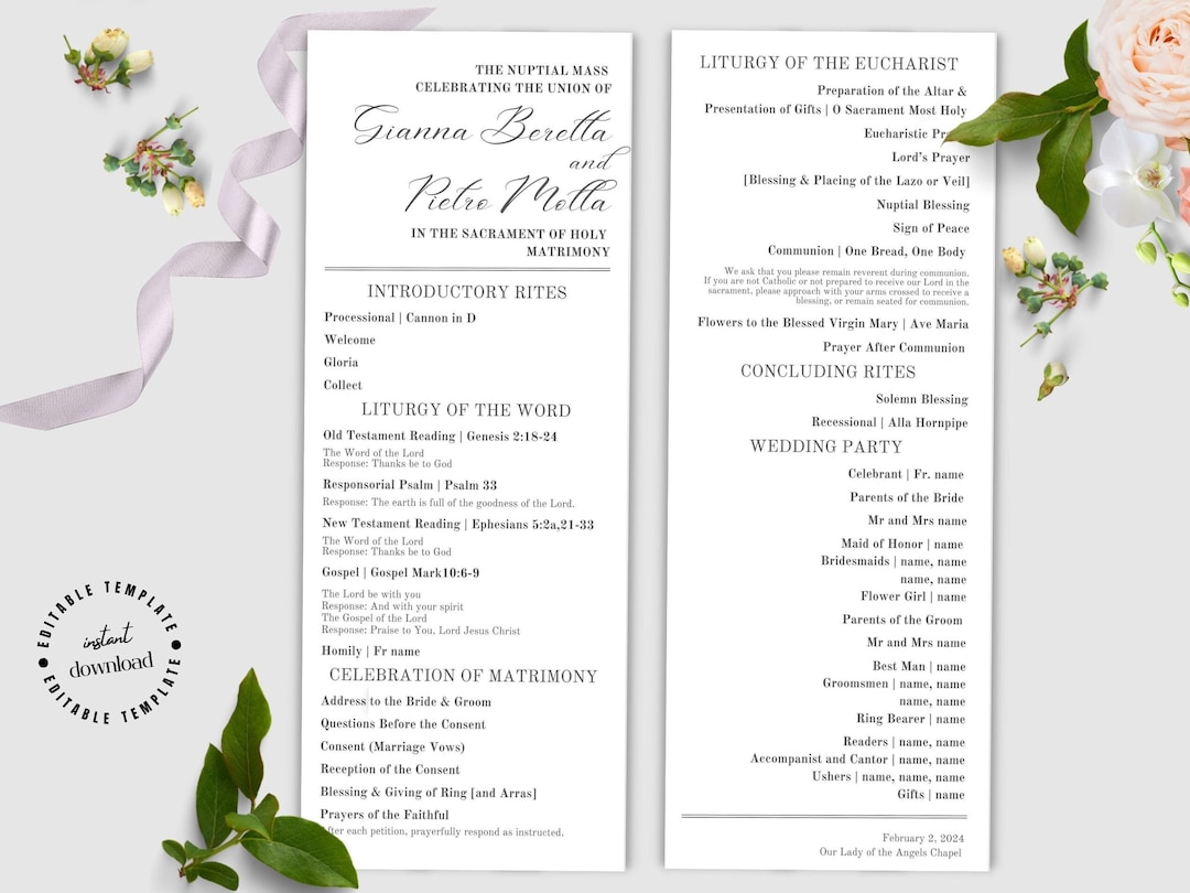 Catholic Wedding Mass Program Instant Download Template Nuptial Mass