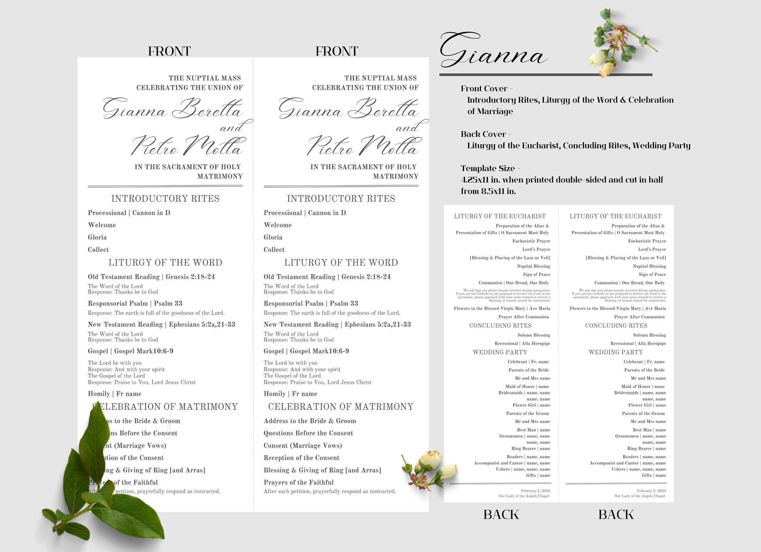 Saint Gianna Catholic Wedding Mass Program Template Full Nuptial Mass