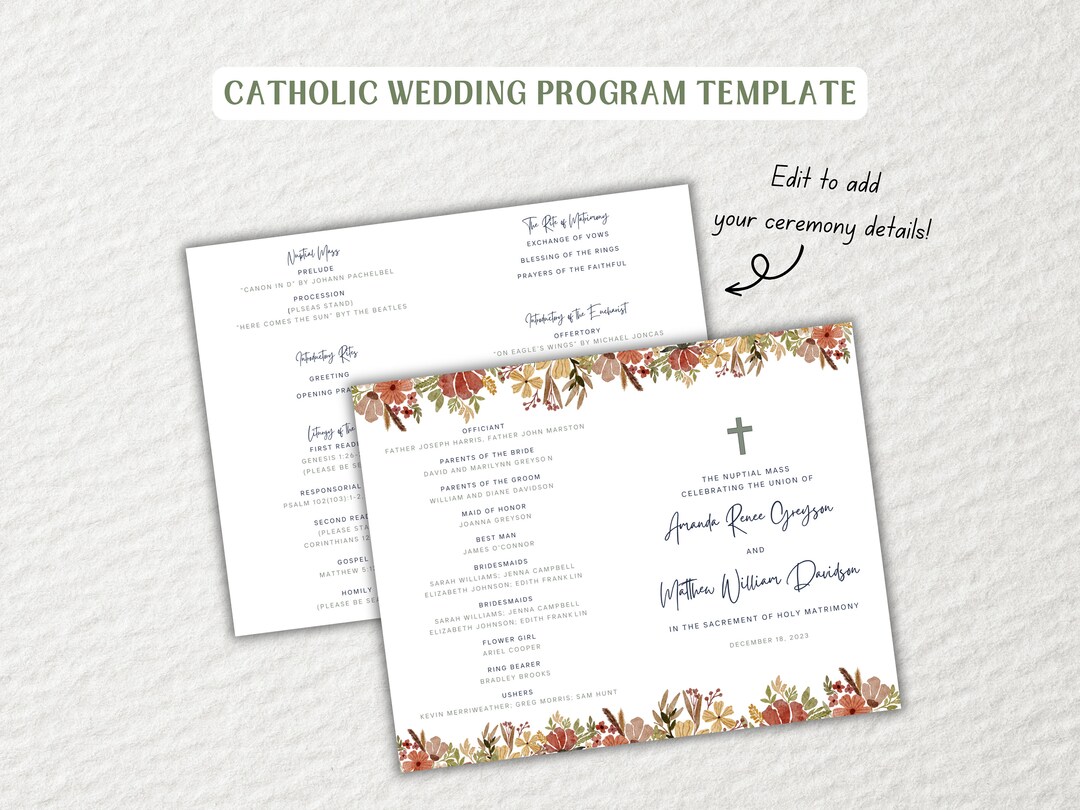 Catholic Wedding Mass Program Template Editable Template Etsy