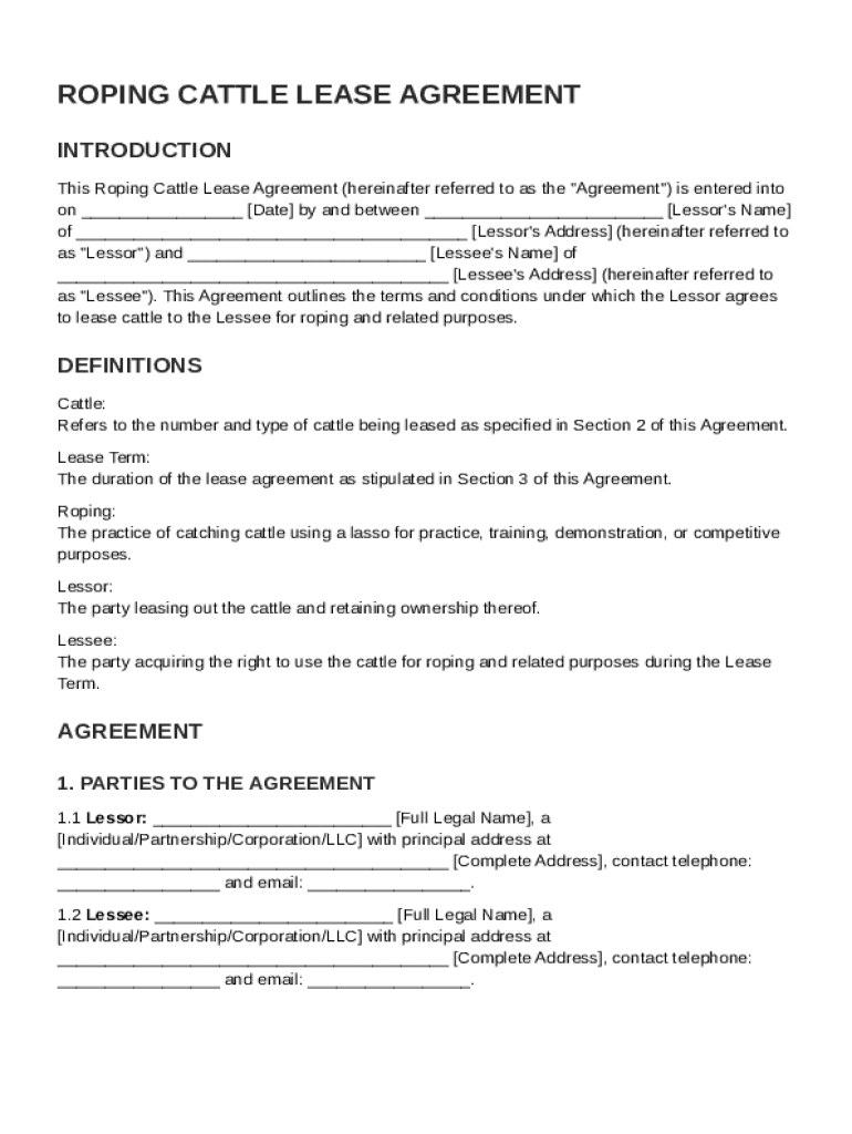 Roping Cattle Lease Agreement Template: Fill out sign online DocHub