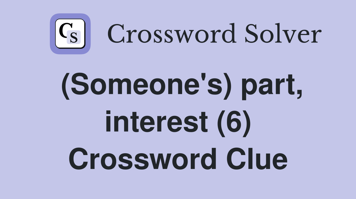 (Someone s) part interest (6) Crossword Clue Answers Crossword Solver