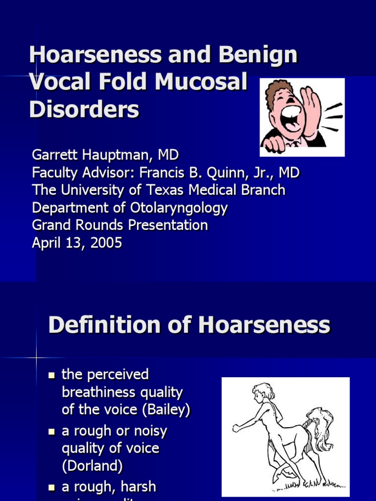 Hoarseness and Benign Vocal Fold Mucosal Disorders PDF Larynx