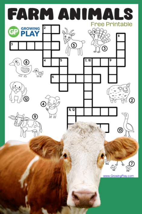 Farm Animal Crossword Puzzle for Kids Free Growing Play
