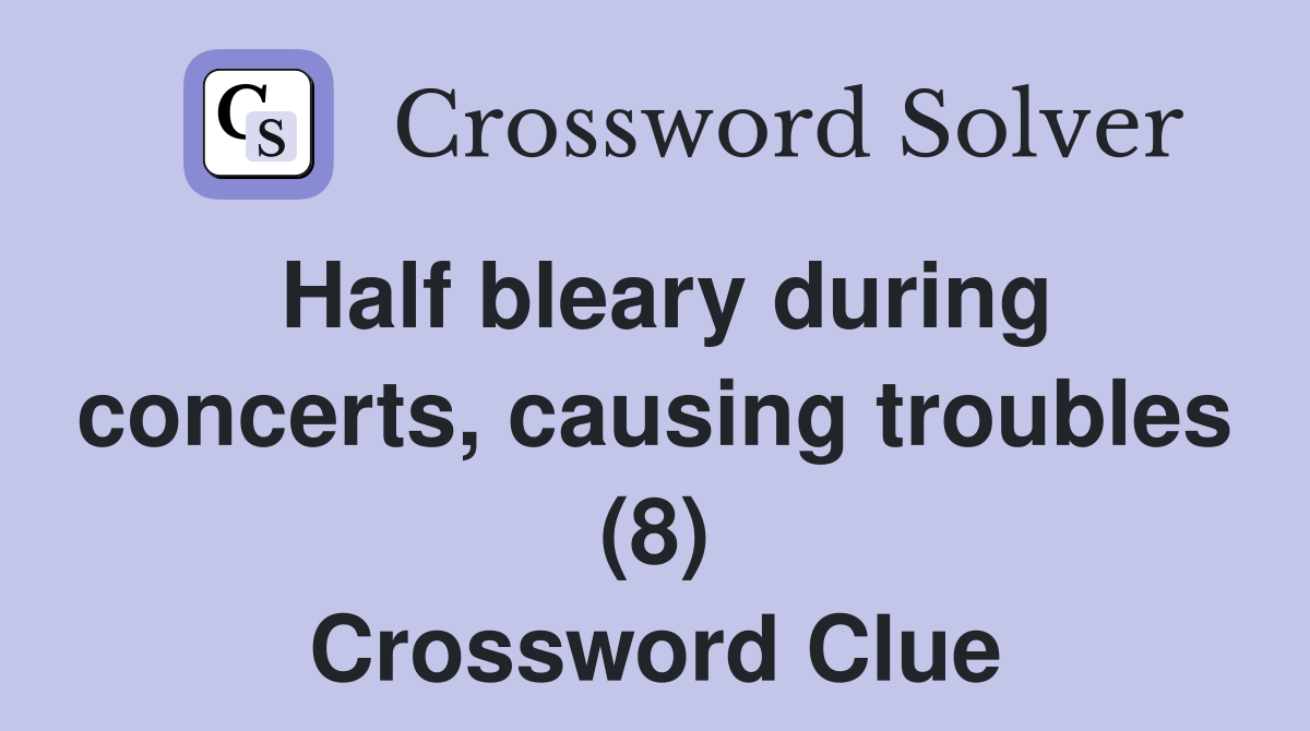 Half bleary during concerts causing troubles (8) Crossword Clue