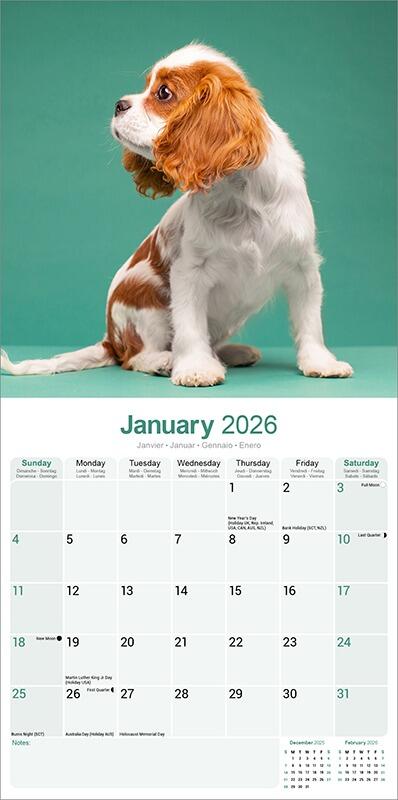 Cavalier King Charles Spaniel Puppies Calendar 2026