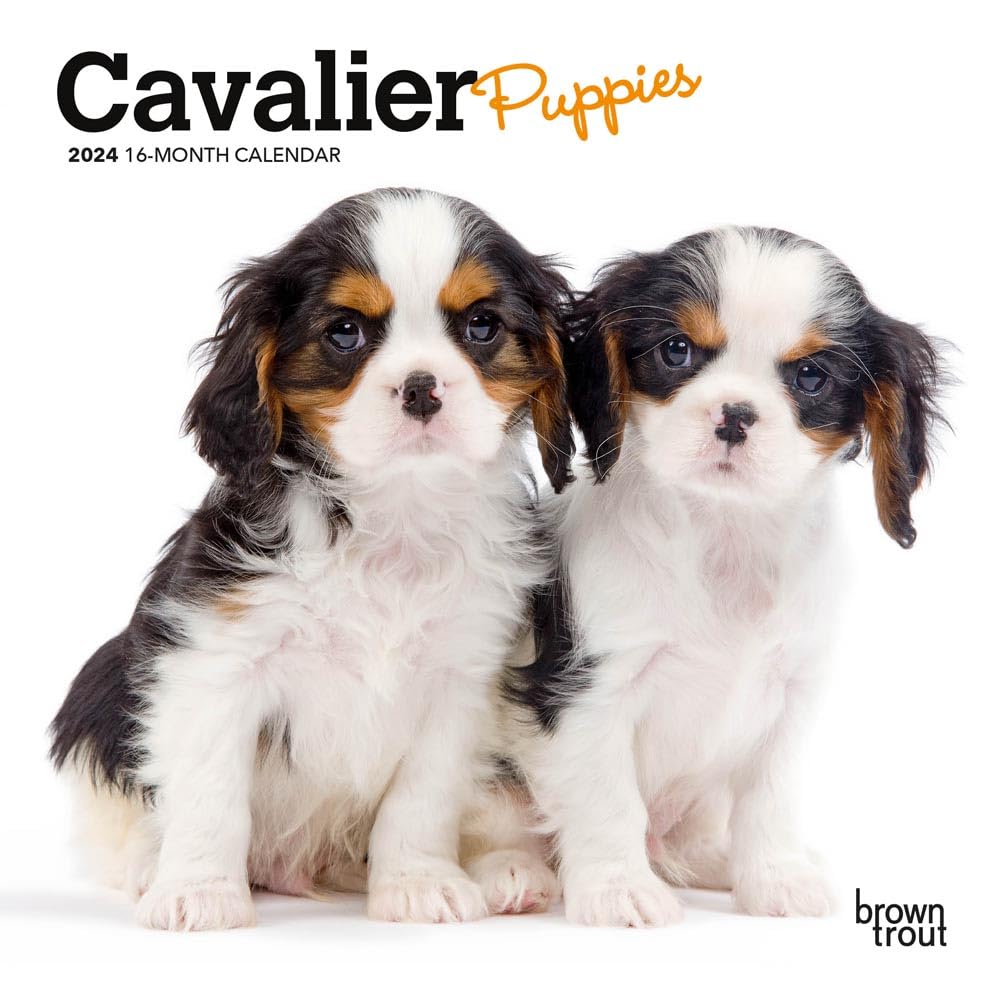 Cavalier King Charles Spaniel Puppies 2024 12 x 24 Inch Monthly