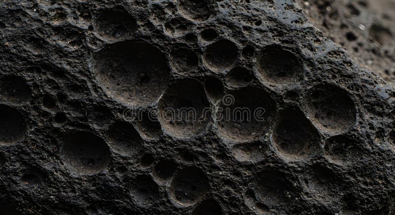 Close up Textured Macro of Porous Dark Gray Volcanic Rock with Many