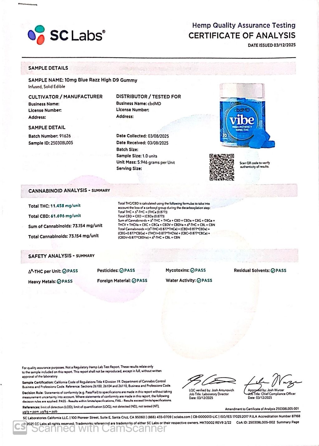 CBDMD GUMMIES Simple Pleasures COA (Certificate of Analysis)