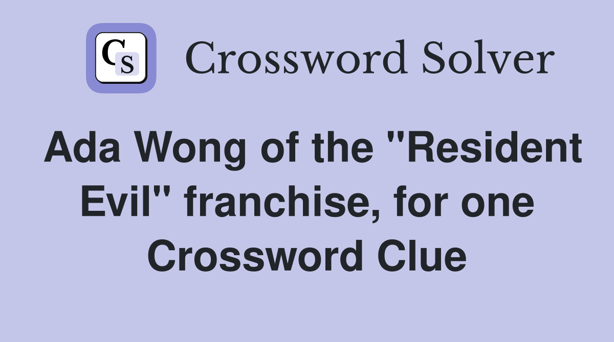 Ada Wong of the quot Resident Evil quot franchise for one Crossword Clue