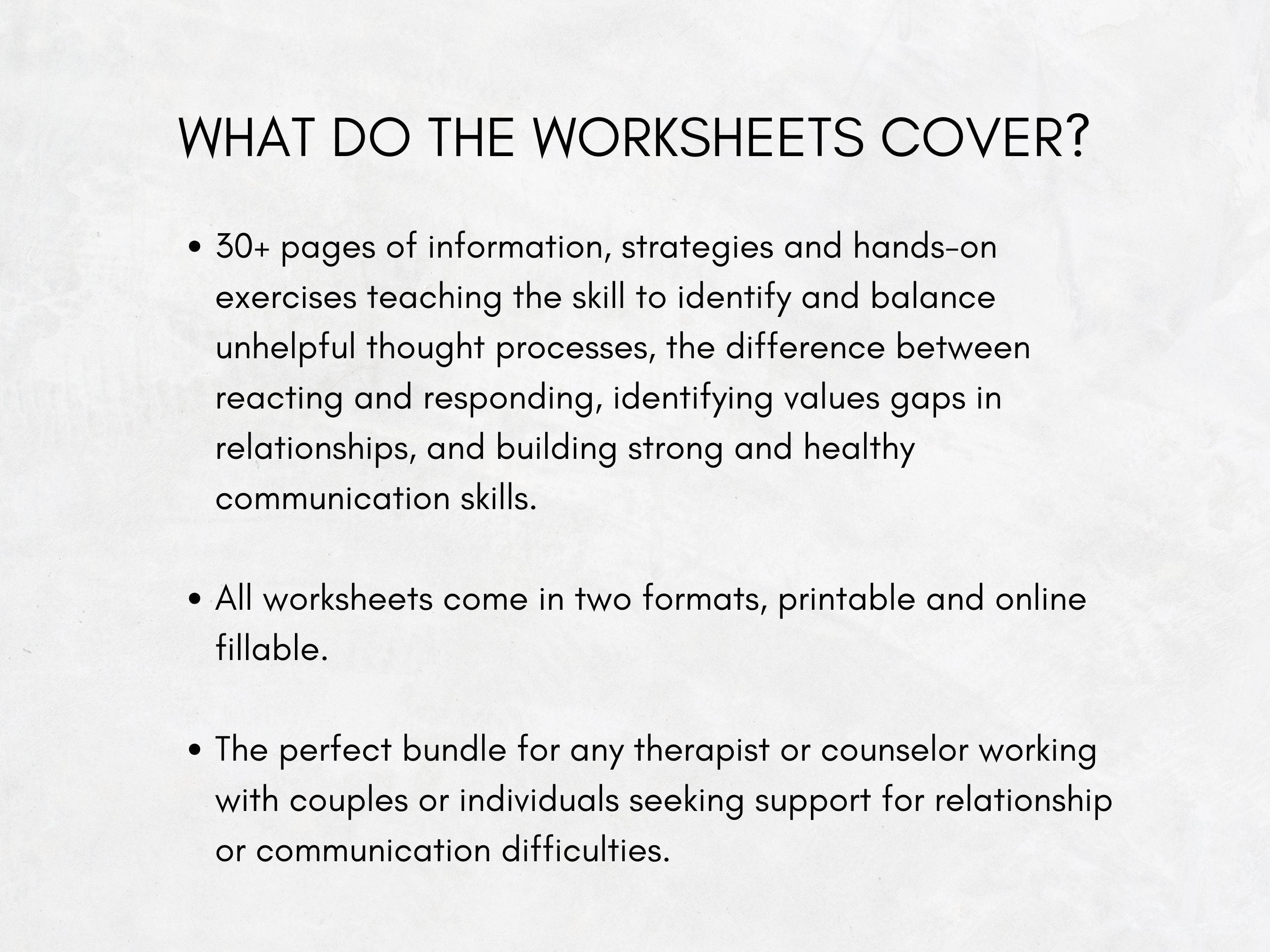 Couples Therapy Worksheets Bundle Pdfs Editable / Fillable Worksheets