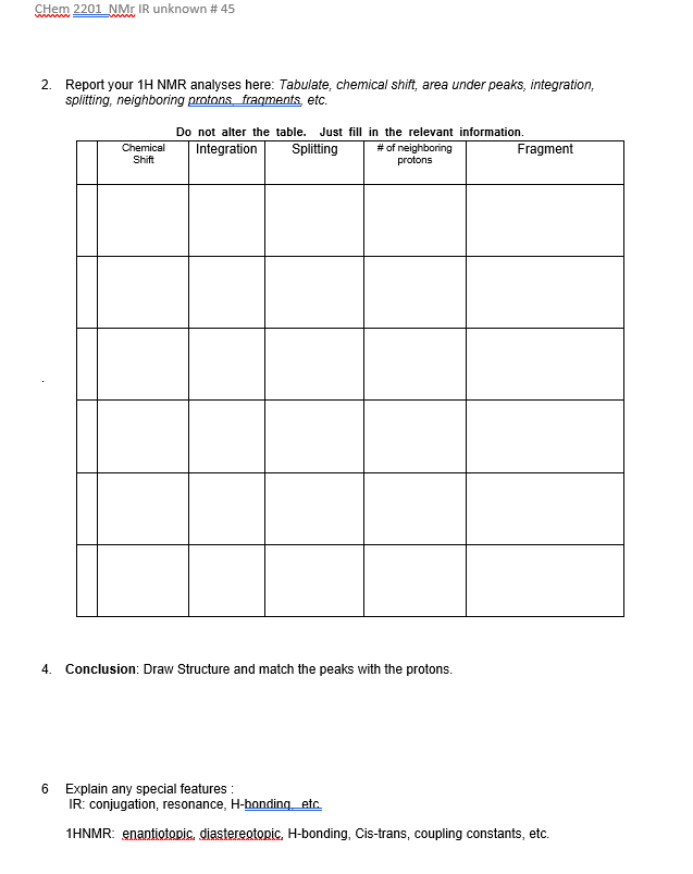 Solved CHem 2201 NM IR unknown # 45 Tabulate the analysis of Chegg com