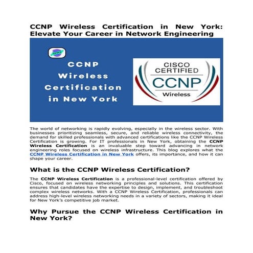 CCNP Wireless Certification in New York Elevate Your Career in Network