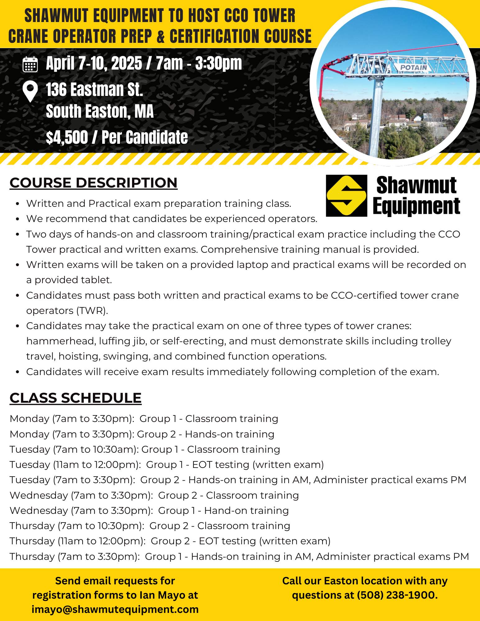 CCO Tower Crane Operator Prep Certification Course Coming to Easton